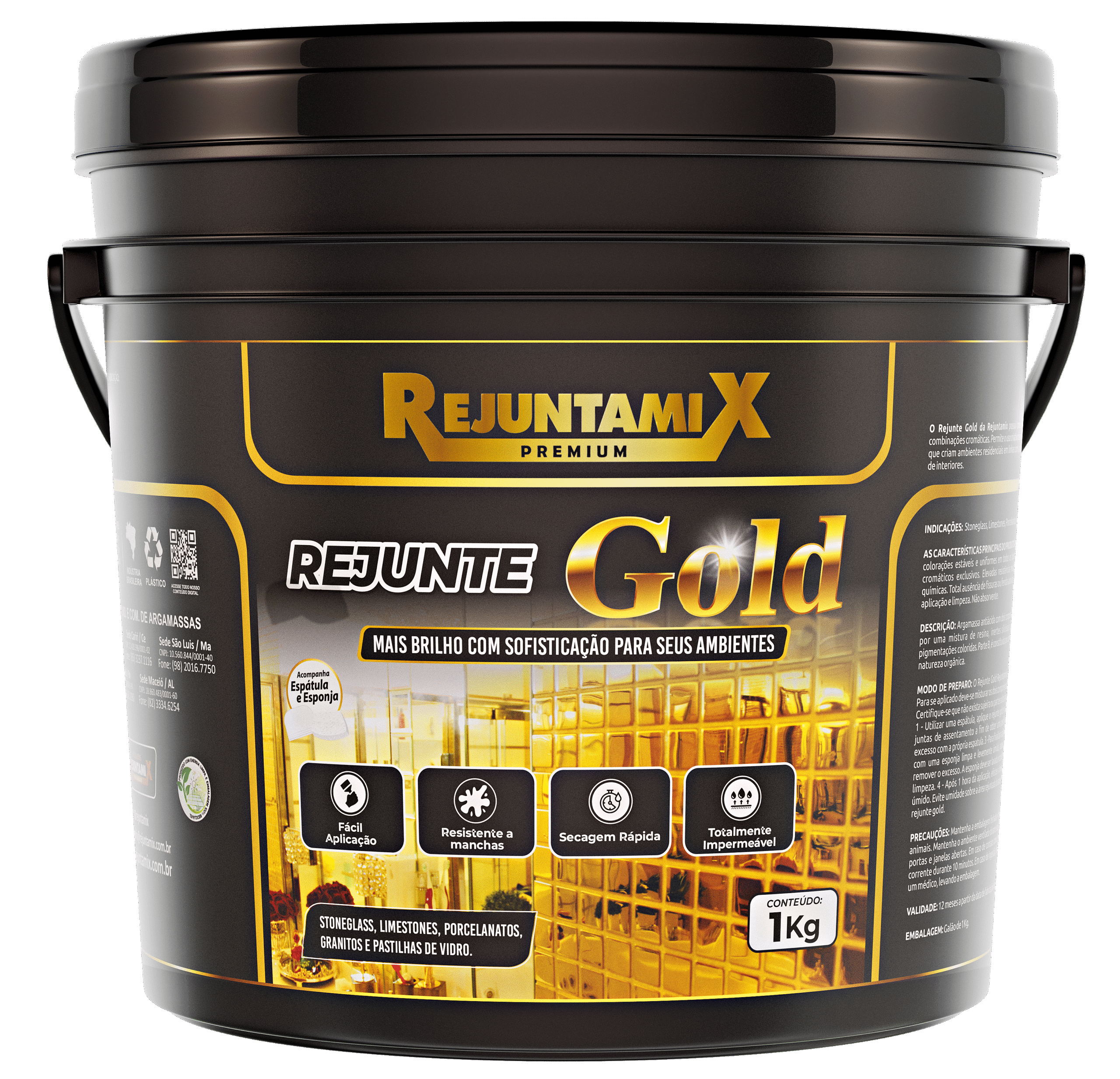 Rejunte Gold Epóxi é fornecido em balde de 2kg. Armazene em local seco e arejado, sobre estado elevado do solo, empilhar